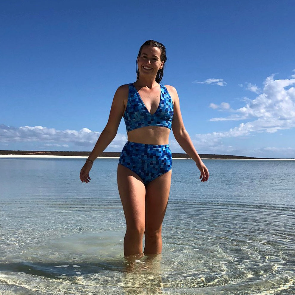 Printed on recycled polyester REPREVE ® (printed fabric) and lined with a Side B block colour in stunning ECONYL® regenerated nylon (solid fabric). This means this fabric is reducing landfill and VOCs, and using less carbon. Made with love by the incredibly skilled team in their Bali studio. Couple with our ocean or calling rashie for long days in the sun.