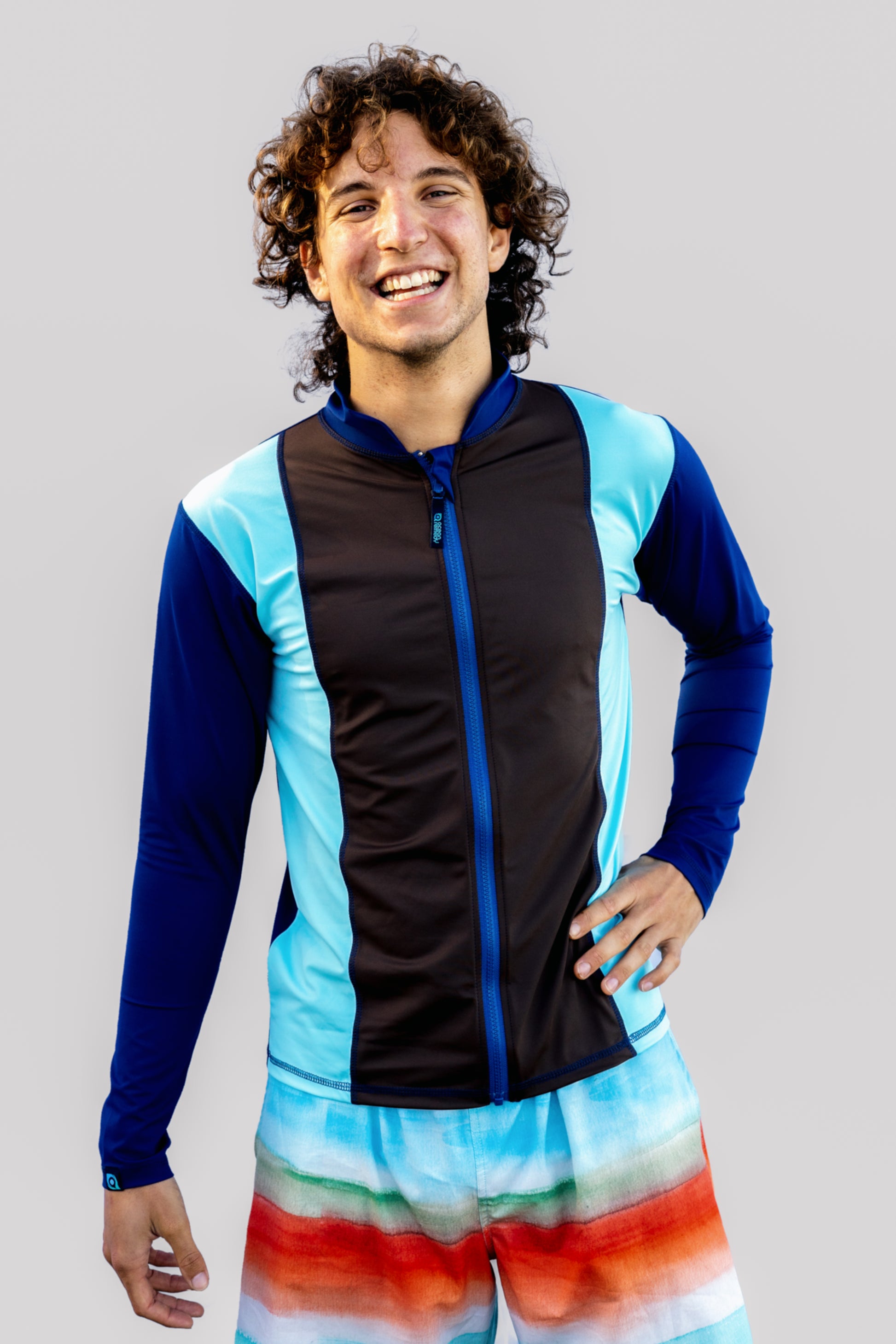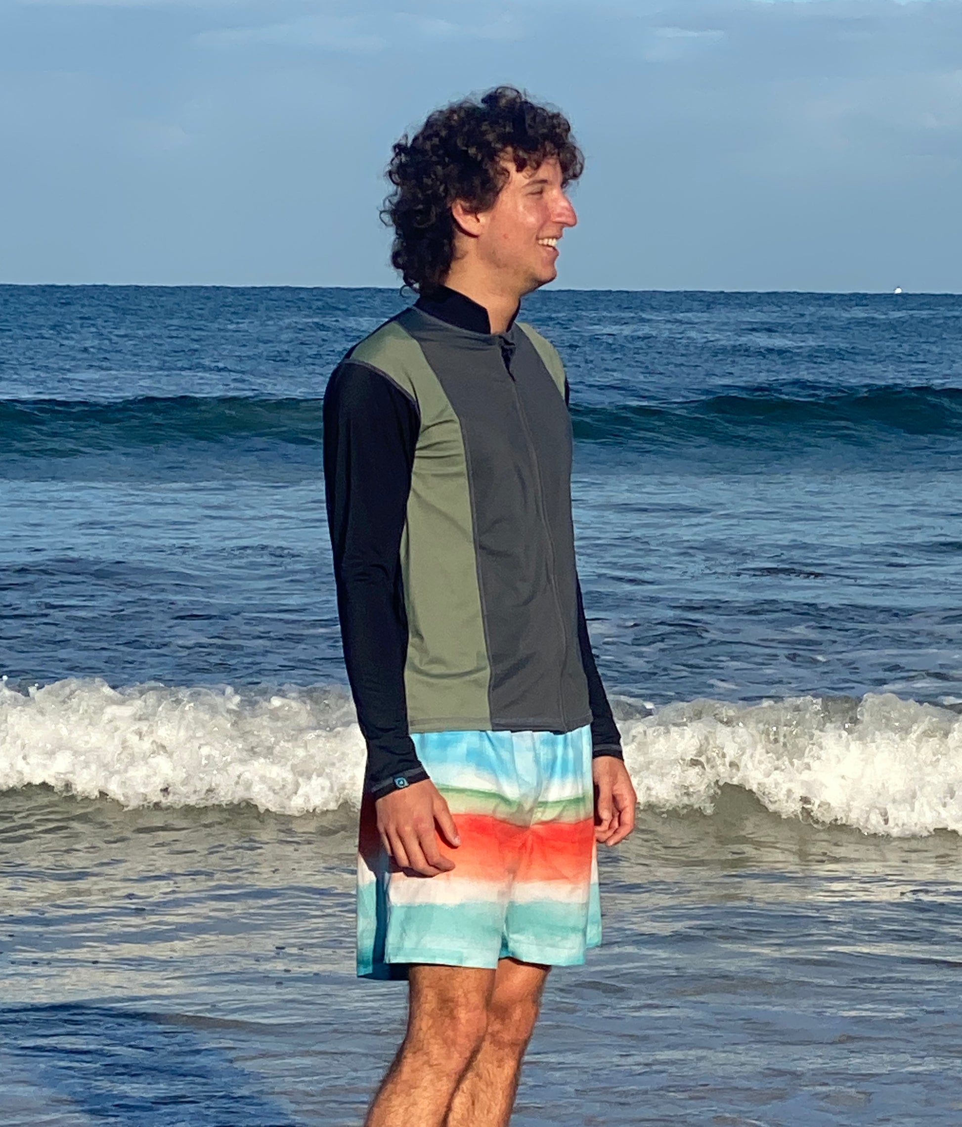 Zipper to the front makes these great if you have an injury or mobility issues. But also, you can wear it open when the sun is at your back for long days on the Riviera : ). These rashies are a break from the everyday bloke rashie that hasn't changed since the 90s. Panelled style for shape, a sharp collar and contrasting colours because you have flair. Cut for ocean-going folks, this rashie combines classic base and feature colours, with long sleeves for long days in the sun.