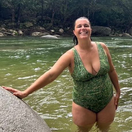 Printed on recycled polyester REPREVE ® (printed fabric) and lined with a Side B block colour in stunning ECONYL® regenerated nylon (solid fabric). This means this fabric is reducing landfill and VOCs, and using less carbon. Couple with our ocean or calling rashie for long days in the sun and Botanica reversible bikini pants.